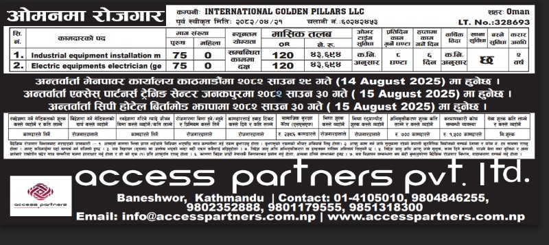 अन्तर्वार्ता एक्सेस् पार्टनर्स ट्रेनिङ सेन्टर जनकपुरमा २०८२ साउन ३० गते ( 15 August 2025) मा हुनेछ ।