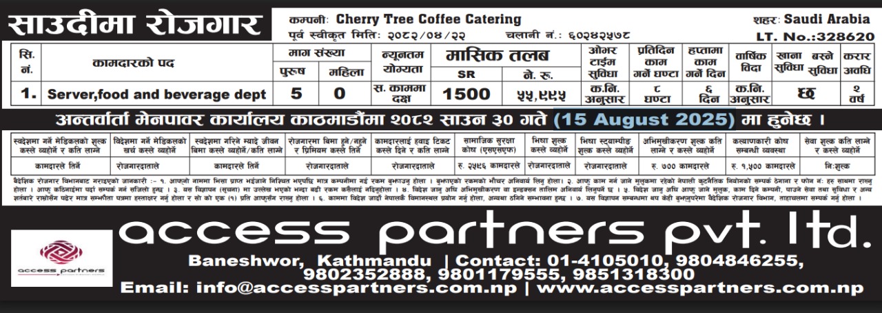 अन्तर्वार्ता मेनपावर कार्यालय काठमाडौंमा २०८२ साउन ३० गते (15 August 2025) मा हुनेछ ।